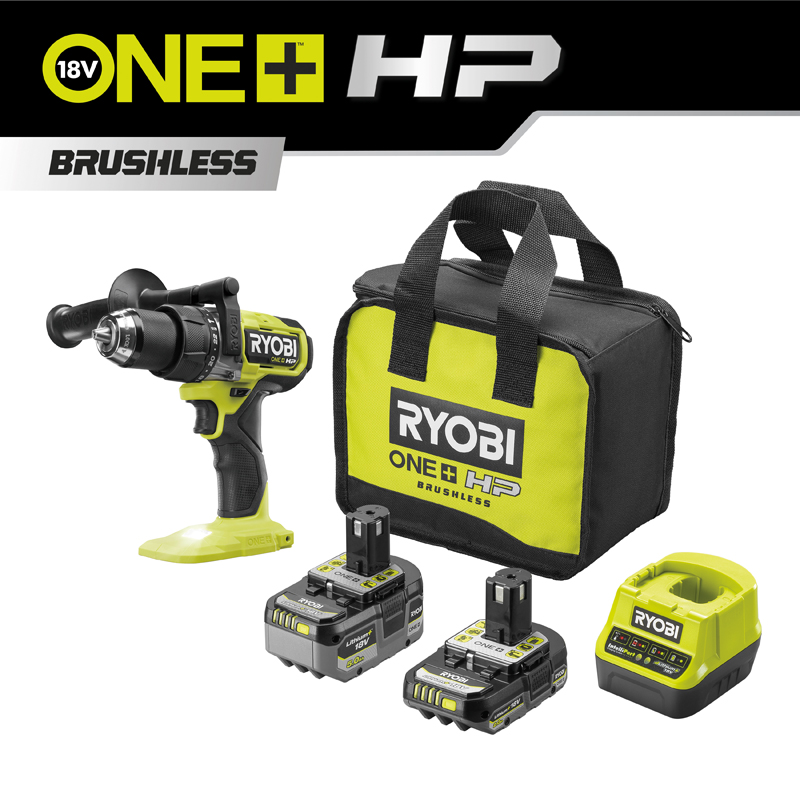 Batteries 2 Ah + 5 Ah – 95 Nm – Mandrin métal 13 mm. Variateur 2 vitesses et fonction percution. 24 réglages de couple. Éclairage LED. En sac.